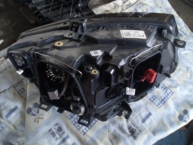 輸入車のヘッドライトは型式・仕様が細かく異なるため、同一品番であることを確認したうえで取り付け作業に入ります。